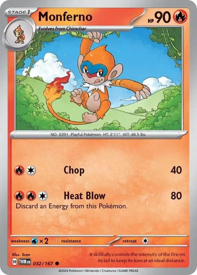 Unleash the fiery power of Monferno with this Twilight Masquerade #032/167 Pokemon card. Join the masquerade and add this card to your collection for endless battles and adventures. Get ready to ignite the fun!