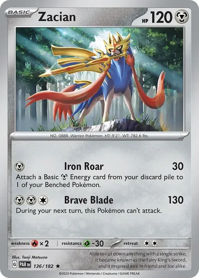 Introducing the Paradox Rift 136/182 Zacian, a powerful addition to your pokemon card collection. With its unique abilities and striking design, this card is sure to enhance your gameplay and impress your opponents. Don't miss out on the opportunity to add this rare find to your collection.