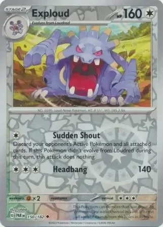 The Paradox Rift 150/182 Exploud is a powerful addition to your Pokemon card collection. With its unique design and abilities, this card will enhance your gameplay and give you an edge against your opponents. Perfect for collectors and players alike, don't miss out on adding this rare and impressive card to your deck.
