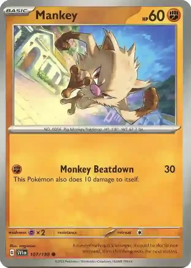Experience the thrill of the hunt with Scarlet & Violet's 107/198 Mankey pokemon card. This expertly crafted collectible features impressive design and powerful gameplay, guaranteed to enhance your pokemon collection. Don't miss out on this rare treasure, available now!