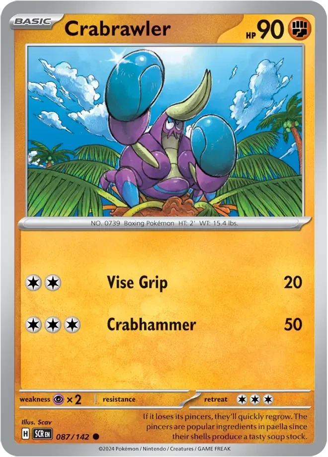 Unleash your inner trainer with the Stellar Crown 087/142 Crabrewler Pokemon card. Dominate any battle with this rare collectible, perfect for any fan's deck. Catch it before it crawls away!