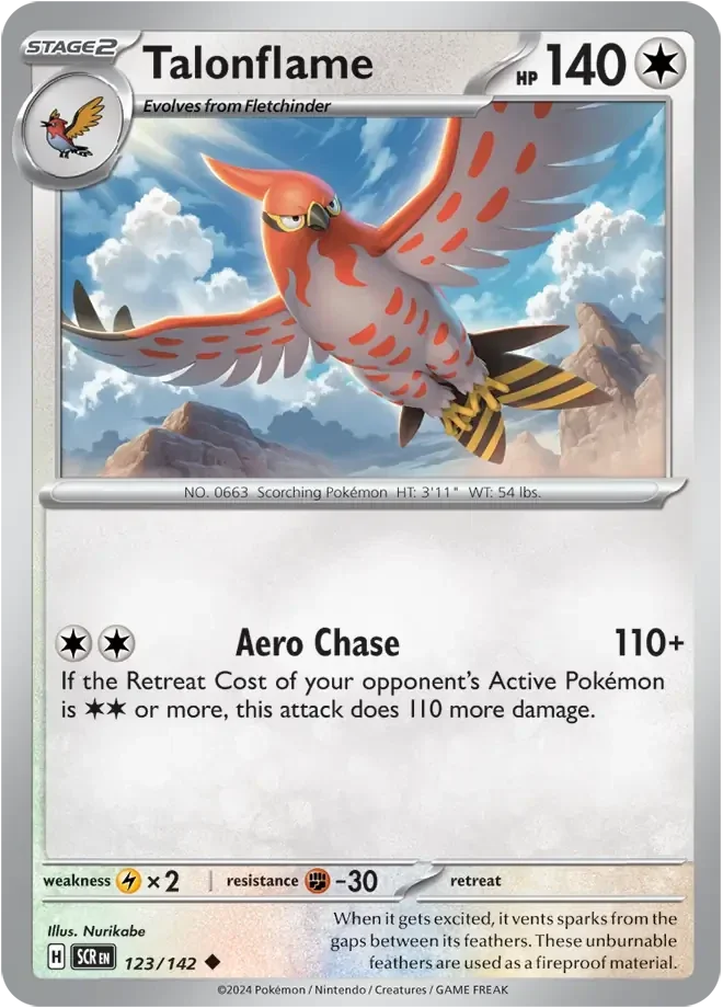 Unleash your inner collector with the Stellar Crown 123/142 Talonflame Pokemon card. Level up your game with this rare find and reign supreme over your opponents. A must-have addition to any Pokemon collection. Gotta catch 'em all!