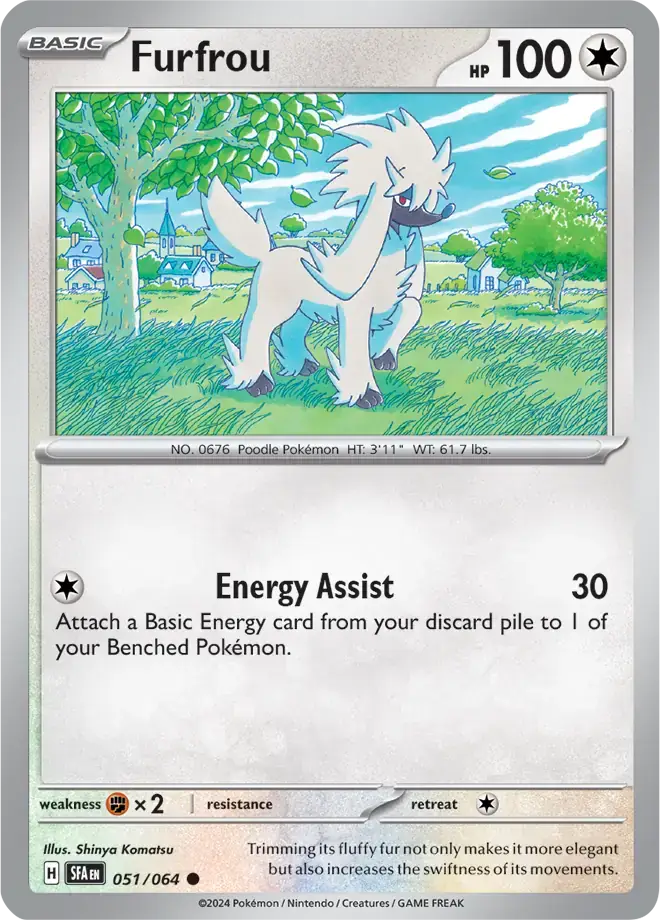 Unleash your playful side with the shrouded Fable 051/064 Furfrou Pokemon card. This quirky addition to your collection promises endless fun and battles with its unique features. Don't miss out on the opportunity to add this one-of-a-kind card to your deck!