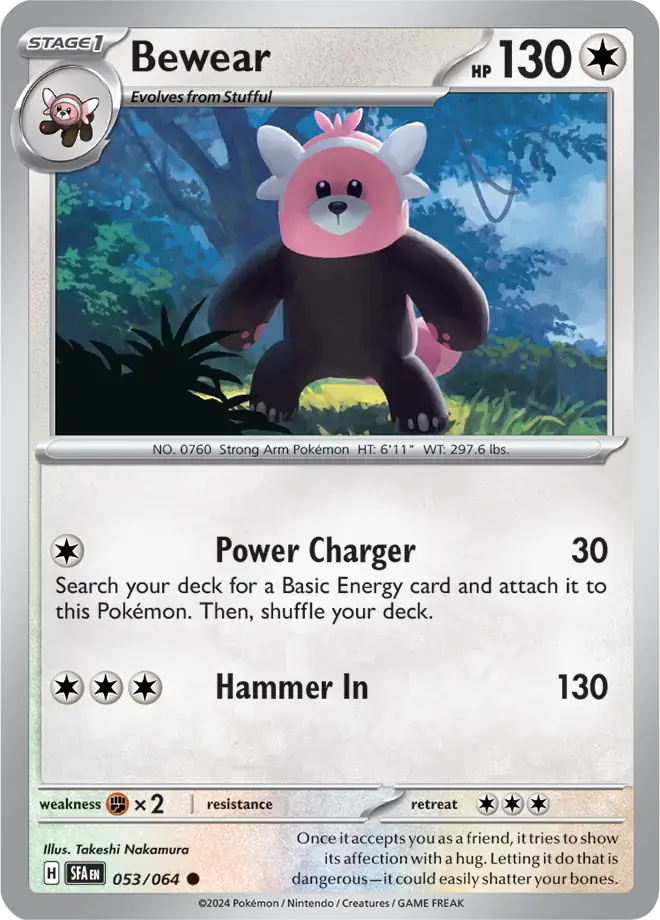 Unleash the beast with the shrouded Fable 053/064 Bewear pokemon card! This fierce card is sure to pack a punch in any battle. Don't miss out on adding this powerful addition to your collection. (Don't let its cuddly appearance fool you!)