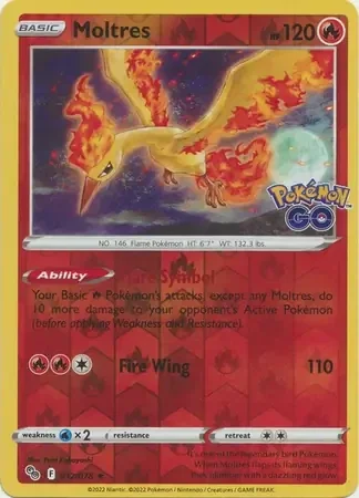 Unleash the power of Pokemon Go with Moltres! This 012/078 card is a must-have for any trainer. With its powerful abilities and unique design, it's sure to bring excitement to every battle. Catch it while you can and add it to your collection today!