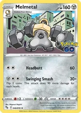 This Melmetal Pokemon card, with a rarity of 046/078, is a valuable addition to any collection. With impressive stats and abilities, this card is a must-have for any Pokemon expert. Catch it now and enhance your gaming experience!