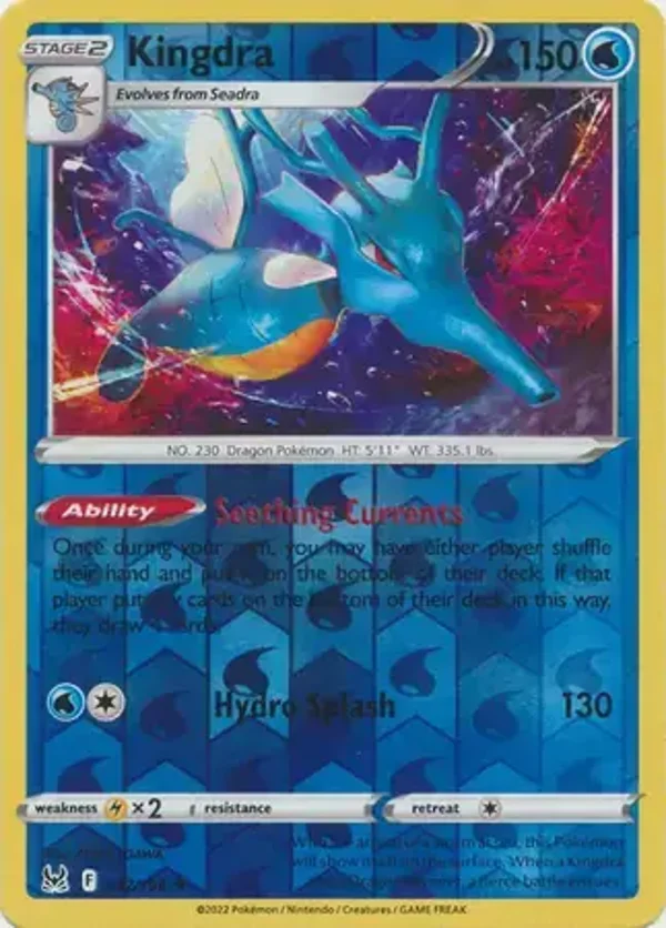 Capture the elusive Lost Origin Kingdra (037/196) Pokemon card and add it to your collection. With its stunning holographic design, this rare card is sure to be the envy of any Pokemon trainer. Unlock new depths of power and strategy with this unique and powerful card. Gotta catch 'em all!