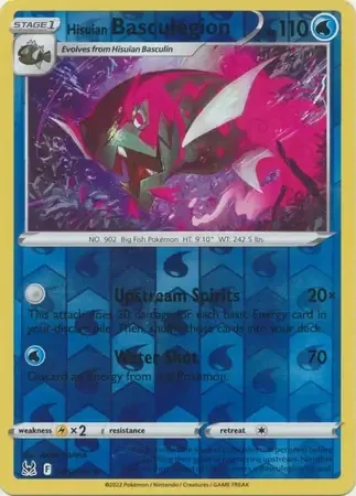 Unleash the epic power of the Lost Origin Pokemon card! With its 045/196 Basculegion feature, this card is a force to be reckoned with. Take your game to the next level and dominate your opponents with this must-have addition to your collection.