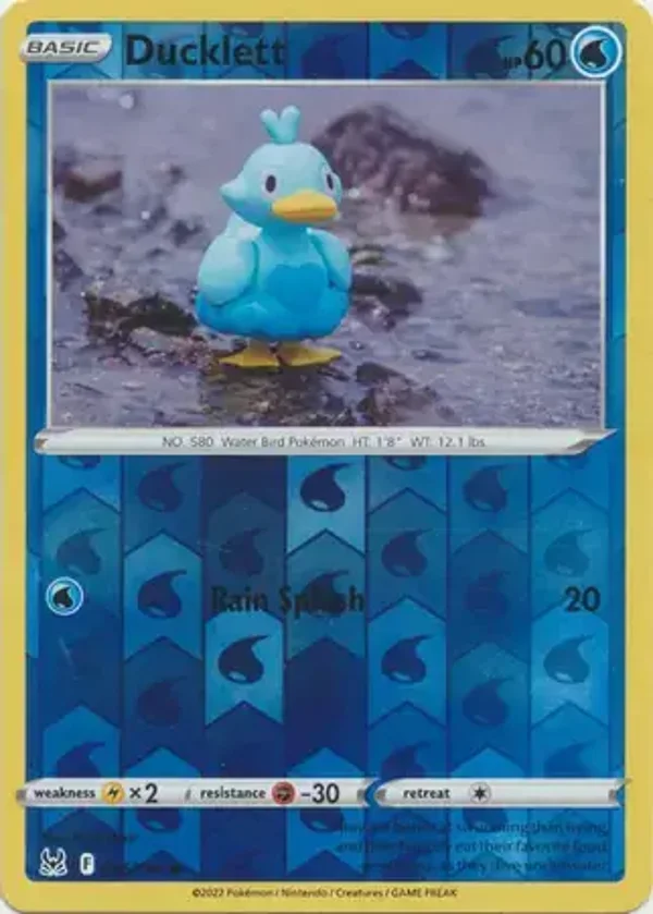 Add some quacktastic fun to your pokemon card collection with the Lost Origin Ducklett card! This quirky and playful card is sure to bring a smile to your face (and maybe even your opponent's). Catch it before it flies away!