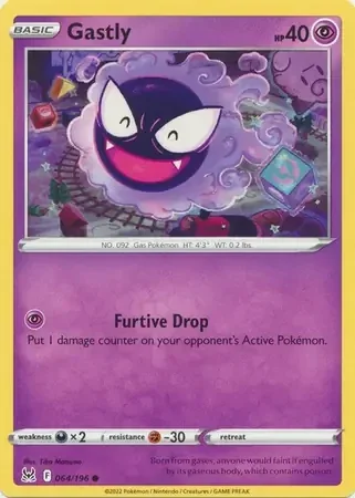 Unleash your inner trainer with the Lost Origin 064/196 Gastly Pokemon card. Catch 'em all with this rare card featuring Gastly.
