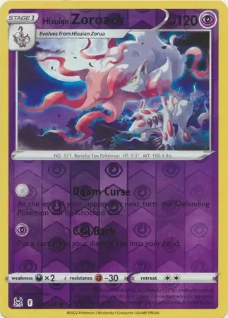 Discover the elusive power of the Lost Origin Hisuian Zoroark (076/196) pokemon card! Unleash its cunning strategy and surprise your opponents. Complete your pokemon card collection today!