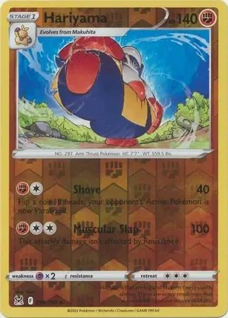 Unleash the ultimate power with Lost Origin 098/196 Hariyama! This sleek pokemon card packs a punch and brings a whole new level of excitement to the game. Collect, trade, and battle with this unique addition to your collection.