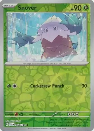 Enhance your Pokémon collection with Paldea Evolved 010/193 Snover! This rare and powerful Pokémon card is a must-have for any trainer. Boost your deck and increase your chances of winning battles with Snover's unique abilities. Catch it now and become the ultimate Pokémon master!