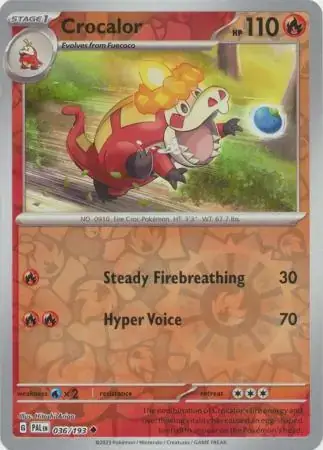 Experience the ultimate evolution with the Paldea Evolved Crocalor pokemon card. Unleash powerful attacks and strategies with this rare and sought-after addition to your collection. Upgrade your battles and impress your opponents with the strength and rarity of this card.