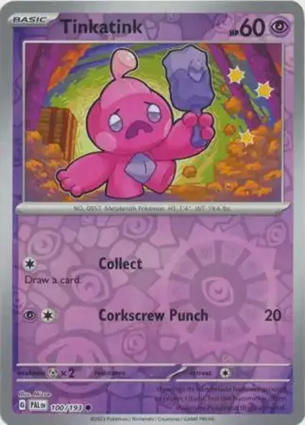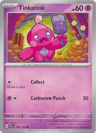 Upgrade your Pokemon card collection with the Paldea Evolved 100/193 Tinkatink. Evolve your strategy and dominate battles with this unique card. Catch them all and show off your powerful deck.