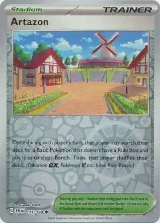 The Paldea Evolved 171/193 Artazon is more than just a pokemon card. It's a collectible piece of art that allows you to build your pokemon deck and strengthen your battles, while also displaying your love for the pokemon universe. Start your collection today and become a pokemon master!