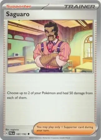 Introducing the latest addition to your collection - the Paldea Evolved 187/193 Saguaro Pokemon card. With its intricate design and powerful abilities, this card is a must-have for any Pokemon trainer. Don't miss out on the chance to enhance your strategy and defeat your opponents.