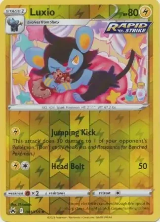 Collect the Crown Zenith 041/159 Luxio Pokemon card and add it to your collection. Feel the nostalgia and excitement of the classic Pokemon world. A must-have for any Pokemon fan.