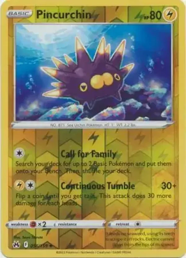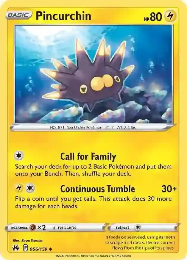 Catch 'em all with this rare Crown Zenith 056/159 Pincurchin pokemon card. Add it to your collection or use it in battles for an added advantage. Don't miss out on the opportunity to own this valuable card.