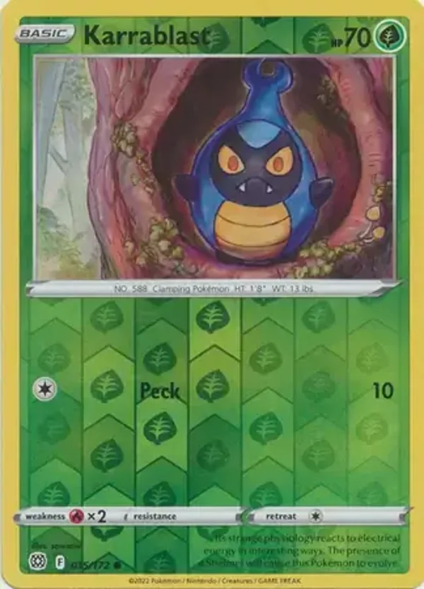 Collect and battle with the powerful Brilliant Stars 015/172 Karrablast trading card. With its rare and unique features, this card is a must-have for any Pokemon collector or trainer. Don't miss out on adding this versatile and sought-after card to your deck!