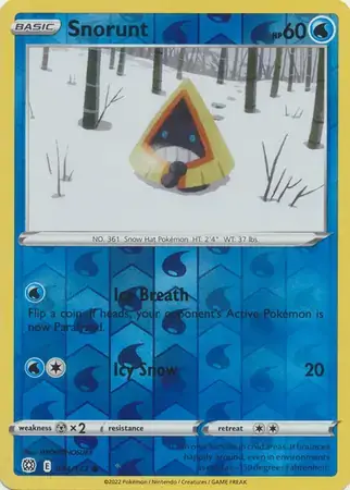 Catch them all with the Brilliant Stars 034/172 Snorunt card. As a legendary Pokemon, this card is a valuable addition to any collector's deck. With its powerful abilities and stunning artwork, this Pokemon card is sure to impress both players and fans alike. Get ready to battle and level up with Snorunt.
