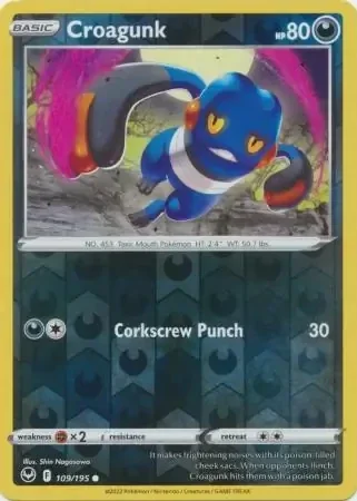 As a Pokemon expert, you'll want to get your hands on the highly sought-after Silver Tempest 109/195 Croagunk card. With this card in your collection, you'll have access to a rare and powerful creature, increasing your chances of victory in battles. Don't miss out on the opportunity to add this valuable and sought-after piece to your collection.