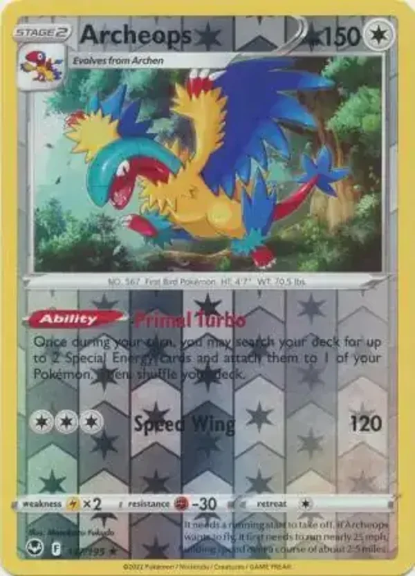 Find a treasure in your collection with Silver Tempest 147/195 Archeops! This powerful pokemon card is sure to impress any collector, with its stunning design and rare status. Don't miss out on this unique addition to your set!