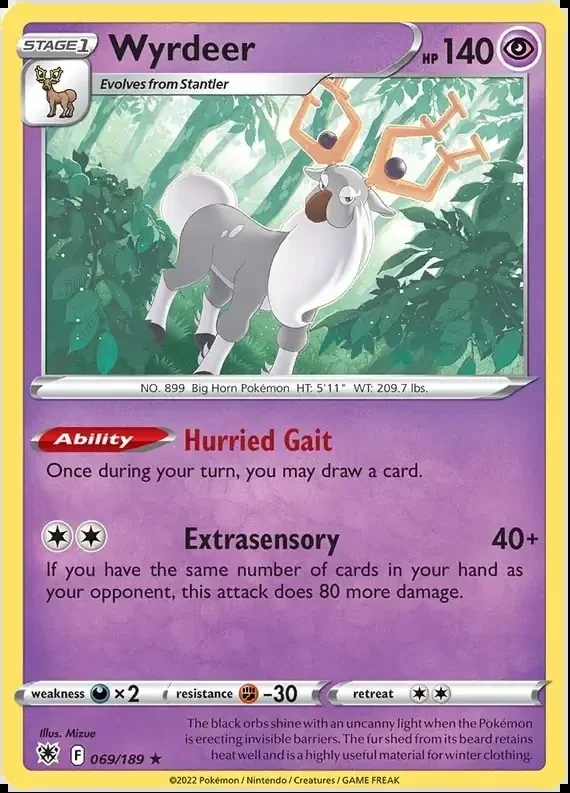 The Astral Radiance 069/189 Wyrdeer is a must-have for any Pokemon card collector. With a unique design and powerful abilities, this card is sure to stand out in your collection. Don't miss out on the opportunity to add this rare and valuable card to your deck.