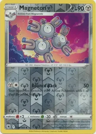Introducing the Astral Radiance 106/189 Magneton Rev Holo, the perfect addition to your Pokemon card collection! With its unique design and powerful abilities, this card will take your battles to the next level. Don't miss out on the opportunity to add this rare and valuable card to your deck. Catch it now!