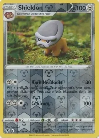 Upgrade your pokemon card collection with the Astral Radiance 109/189 Shieldon Rev Holo. This unique card features stunning artwork and is sure to impress fellow collectors. Add it to your arsenal and dominate your next battle!