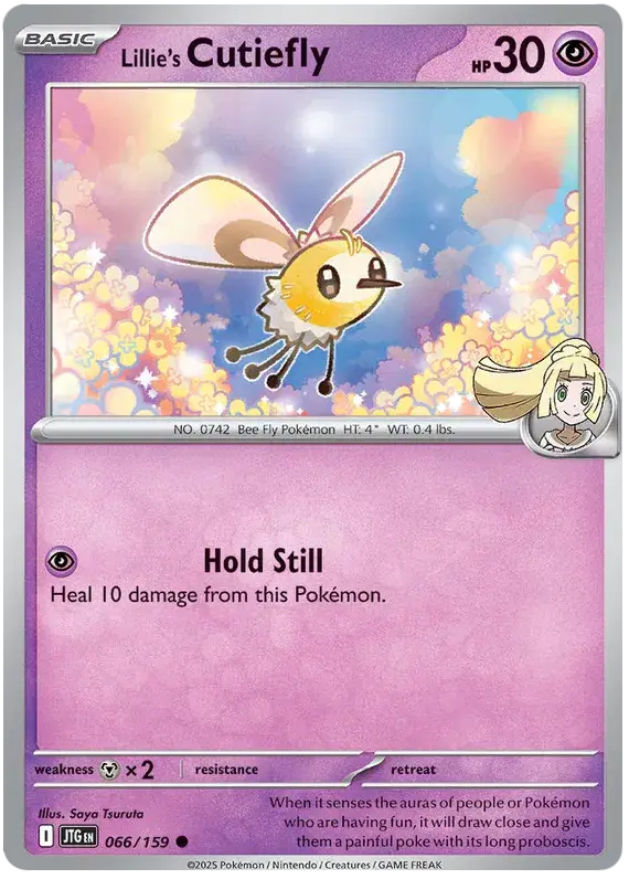 Journey Together 066/159 Lillie's Cutiefly is a Pokémon card from the Journey Together series, featuring a special variant linked to the character Lillie. This card offers strategic support with its quick attacks and evolution potential, enhancing deck versatility. With detailed artwork and precise game statistics, Lillie's Cutiefly is a valuable addition for collectors and competitive players aiming to build dynamic and effective decks.
