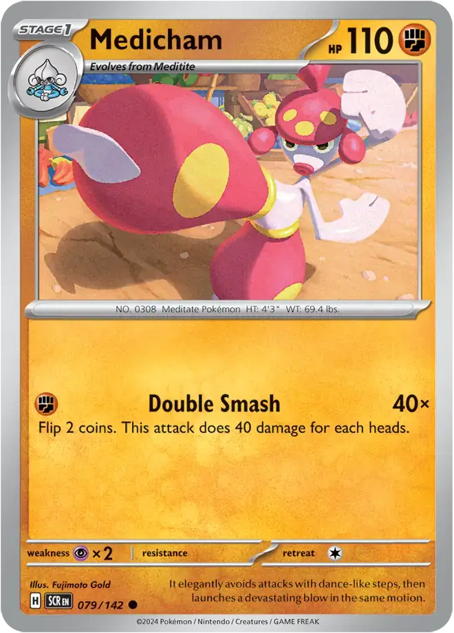 Transform your collection with the Stellar Crown 079/142 Medicham! This rare pokemon card features stunning artwork and valuable gameplay abilities. Catch a winning hand (or paw) with this one-of-a-kind addition to your deck. Gotta catch 'em all!