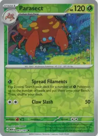 Add this rare Parasect Rev Holo Pokemon card to your collection! With a unique 151 047/165 design, this card is sure to stand out. Boost your Pokemon team with this awesome addition.