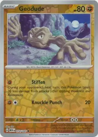 Enhance your Pokemon collection with this rare 151 074/165 Geodude Rev Holo card. Complete with stunning design, this card is a must-have for any fan and will surely stand out in your collection. Don't miss out on the chance to add this classic Pokemon card to your deck!