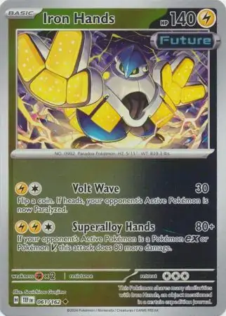 Discover the power of Temporal Forces 061/162 Iron Hands Pokemon Card. With its unique abilities and strategic gameplay, this card will elevate your battles to the next level. Use it to gain an edge against your opponents and become a Pokemon master. Don't miss out on this game-changing card.