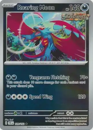 This Temporal Forces 109/162 Roaring Moon Pokemon card is a must-have for any collector. With its eye-catching design and impressive collection stats, this card is sure to make a valuable addition to your collection. Don't miss out on the chance to own this rare and powerful card.