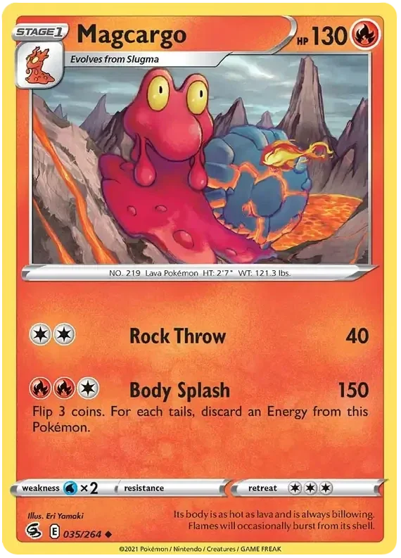 Discover the rare Fusion Strike 035/264 Magcargo Pokemon card. This highly sought-after card is a must-have for any collector. Its unique design and powerful abilities make it a valuable addition to any deck. Don't miss your chance to own this one-of-a-kind card.