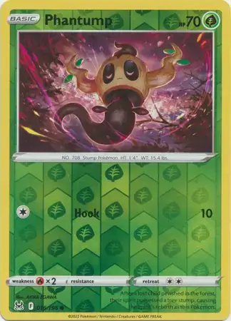 Unleash the nostalgia with this Lost Origin Phantump Pokemon card! Perfect for collectors, this card takes you back to the 90s (and lets you show off your pokemon knowledge). Gotta catch 'em all! (Seriously, hope you didn't miss this one.)