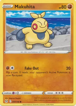 Get ready to rumble with this Lost Origin Makuhita pokemon card! Add this powerful 097/196 card to your collection and take on any opponent. Perfect for any pokemon trainer looking for an edge in battle. Gotta catch 'em all!