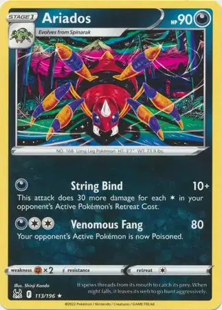 Get lost in the fun with the Lost Origin Ariados! Catch 'em all with this quirky Pokemon card.
