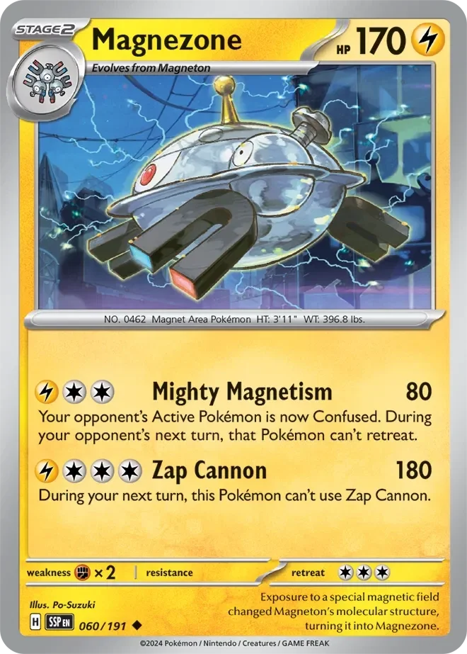 This Rare Pokemon card, Surging Sparks 059/191 Magnezone, is a valuable addition for any serious collector. With its powerful forces and unique abilities, it's sure to enhance any deck. Its rarity and potential for strategic gameplay make it a must-have for any Pokemon enthusiast.