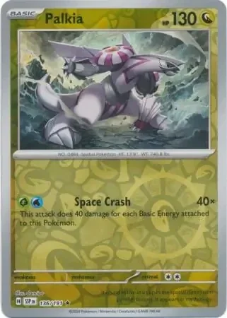 Feel the power of time with Surging Sparks 136/191 Palkia! This Pokémon card lets you bend time to your will, giving you the upper hand in the game. Boost your chances of victory and make this one-of-a-kind card a standout in your collection today.