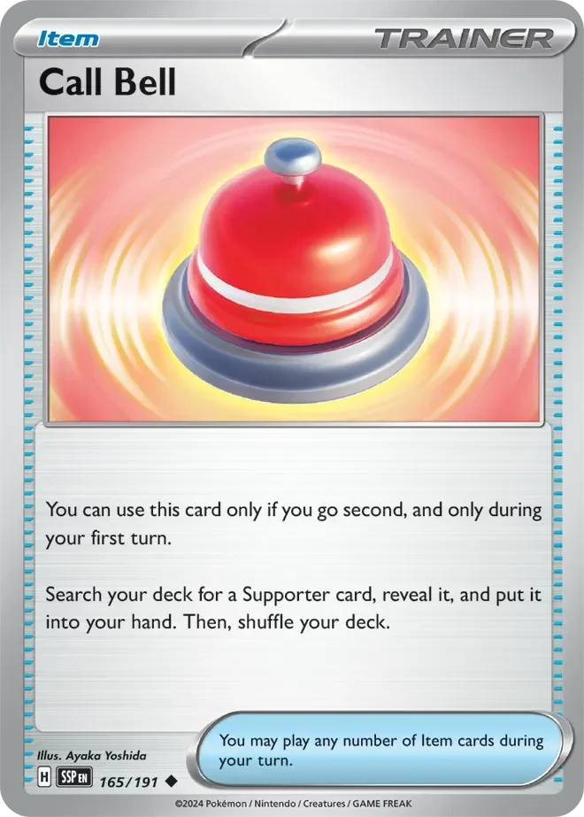 Boost your Pokémon card collection with the Surging Sparks 165/191 Call Bell. Tap into ancient powers and gain the upper hand in battles. Perfectly designed for dedicated collectors, this booster capsule is packed with top-quality cards to give you a strategic edge.